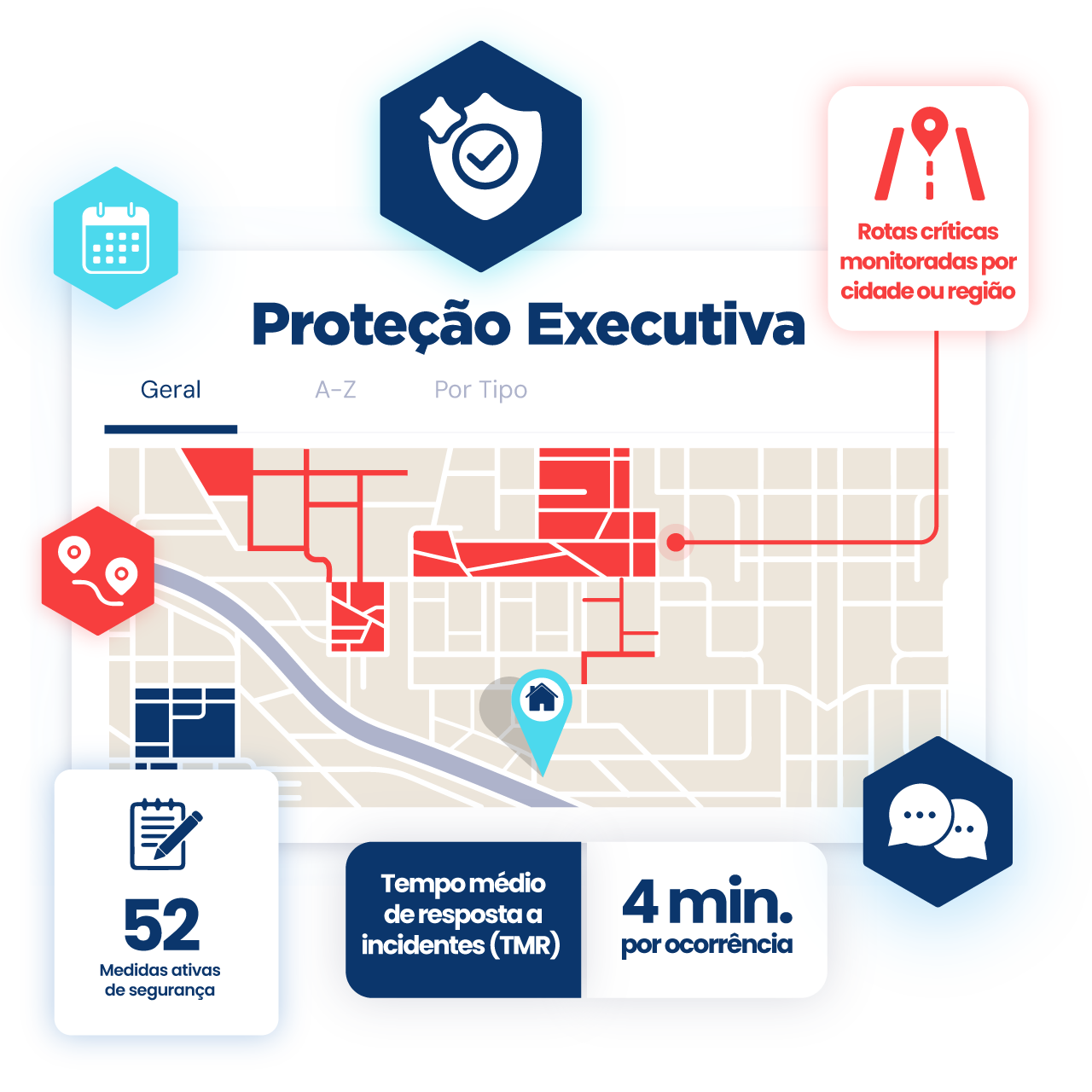 Com nossa Plataforma de Inteligência, usamos dados para criar estratégias sob medida, garantindo segurança eficaz para profissionais de alto escalão, sem interferir na rotina.
